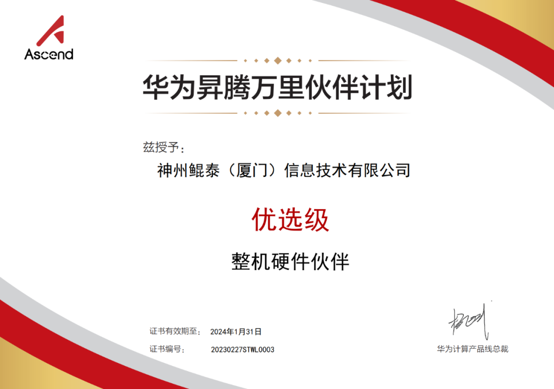 近日,PT电子数码旗下PT电子继获得华为鲲鹏领先级整机硬件伙伴认证之后,再获华为昇腾优选级整机硬件伙伴认证!这是PT电子与华为昇腾深化合作的硕果,也代表着PT电子数码信创业务在AI领域获得生态伙伴的充分认可。